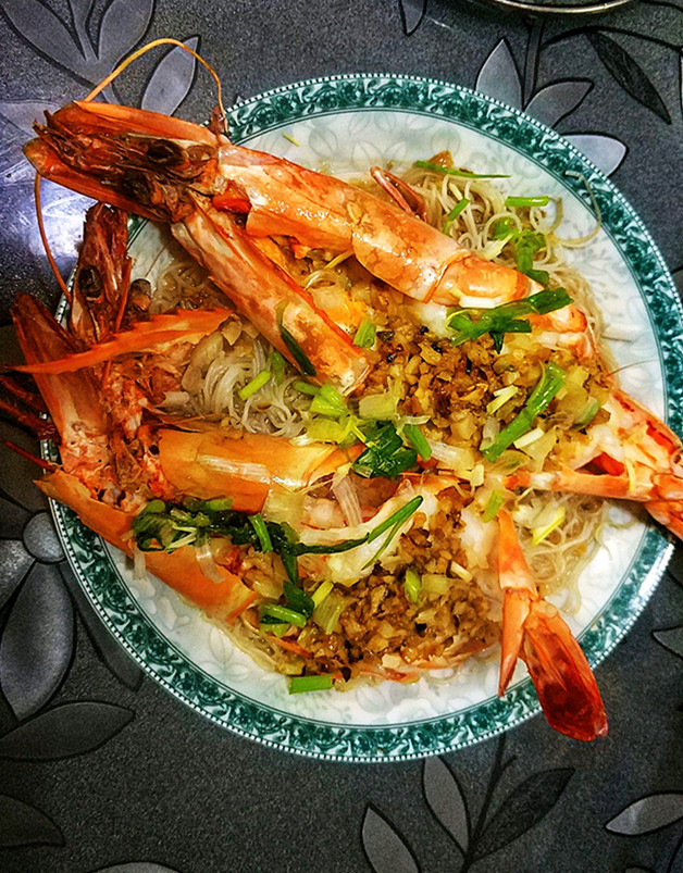 家庭首选蒜茸蒸虎虾,下的下面放些粉丝会更佳,大人小孩都喜欢吃,蒸料按各人口味来调理。