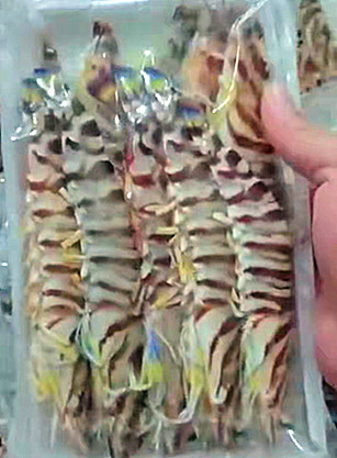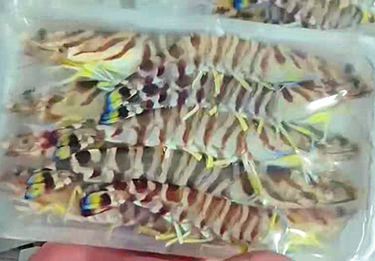 将鲜活的虾装盒包装真空处理直接进超低温冻库保存一定时间锁鲜冷藏。