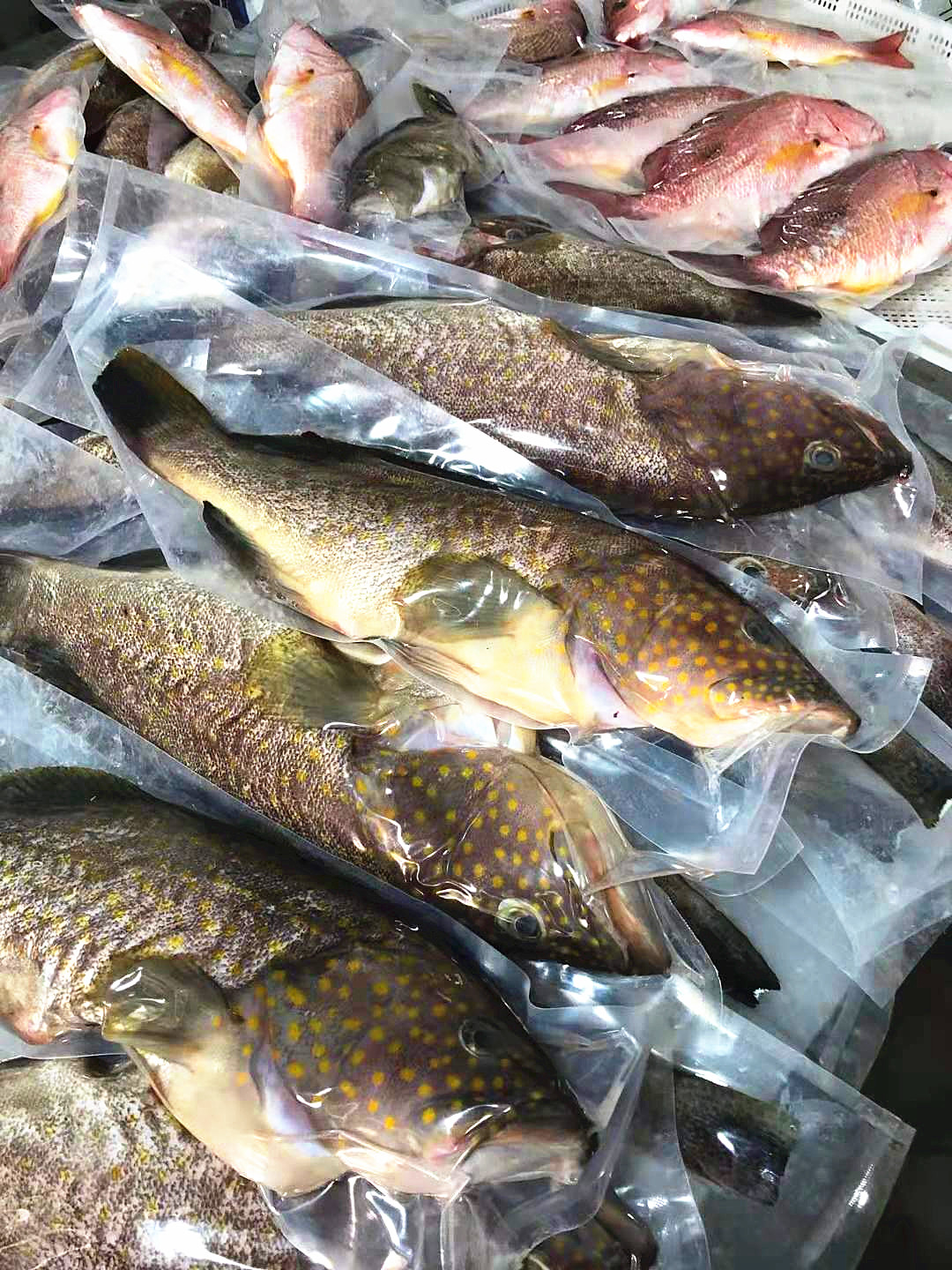 各种已作真空包装的天然野生海鲜